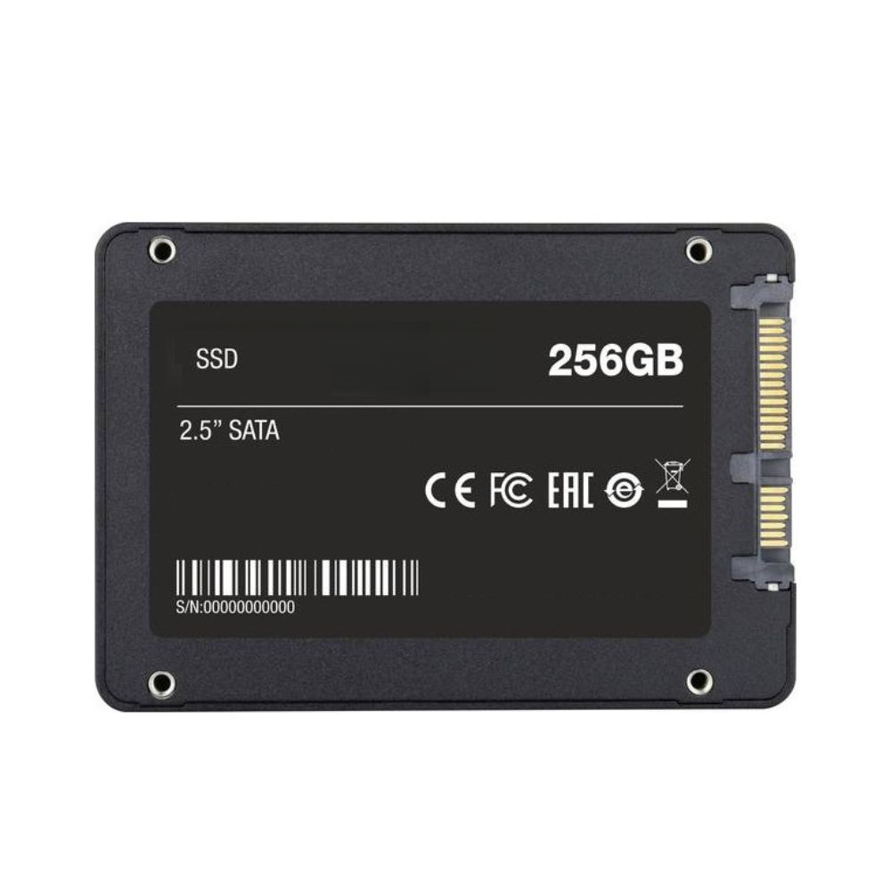 Disque SSD Interne – Capacité: 256 Go – Interfaces: 1 x SATA 6 Gb/s – Débit de transfert interne: 560 Mo/s (lecture) / 430 Mo/s (écriture) – Baie compatible: 2.5″ – Dimensions: 700 x 70 x 7 mm