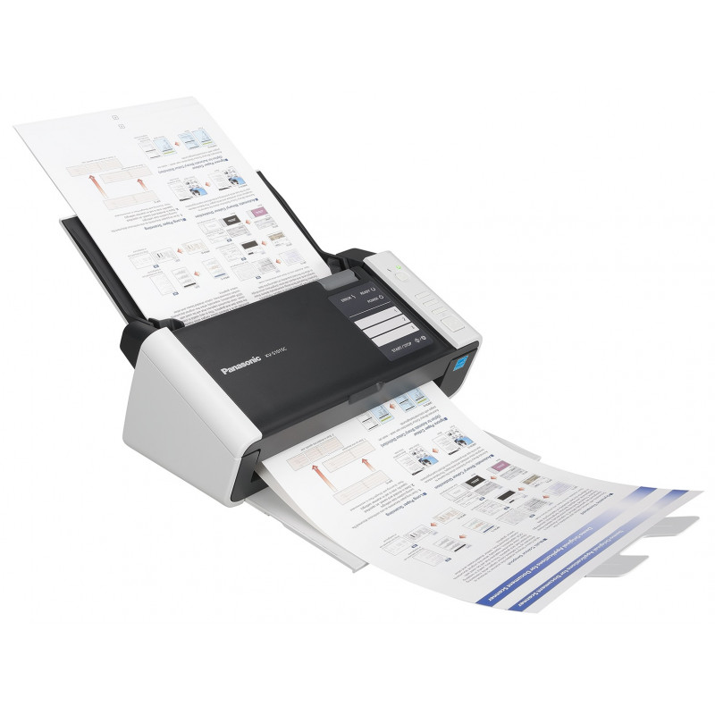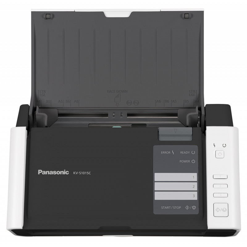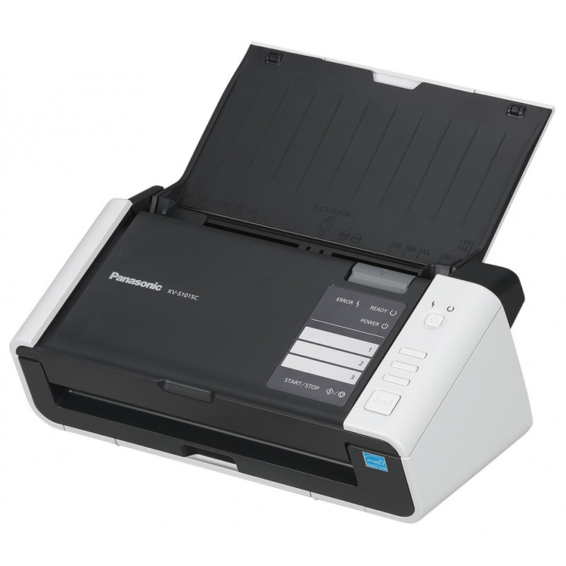 Scanner professionnel Panasonic KV-S1015C-U – Vitesse de numérisation de 20 pages par minute / 40 images par minute – Numérisation couleur recto verso – du format carte de visite au format A4 – Chargeur automatique de documents de 50 feuilles – Prêt à l’emploi grâce aux logiciels BizCard et PageManager fournis – Connectivité cloud – Trois touches de numérisation personnalisables permettant d’envoyer les documents vers des destinations préenregistrées – Prise en charge de documents mixtes et possibilité d’insérer plusieurs cartes rigides – Volumétrie quotidienne : 2 000 pages